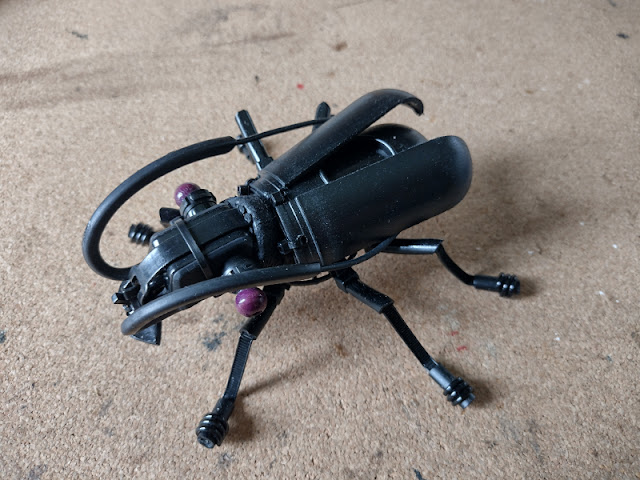 Made up of shower curtain rings, beverage nozzles, clothespins, plastic forks, etc.